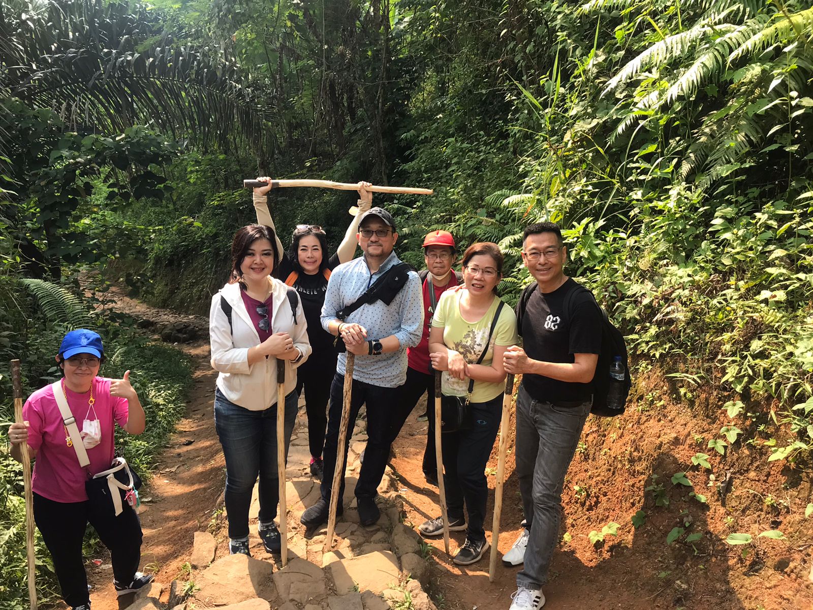 Tidak jauh kami berjalan, kami berjumpa dengan Pak Edison yang duduk di atas bambu, merasa tidak kuat untuk meneruskan perjalanan. Bu Evi memberi dorongan, dan Darma (guide kami) menawarkan untuk membawakan tas Pak Edison, sehingga Pak Edison mau untuk mencoba melanjutkan perjalanan.
